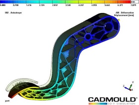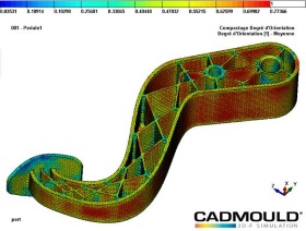 Les logiciels Cadmould® simulent les process d’injection et calculent l’orientation des fibres qui chargent la matrice polymère pendant le remplissage de l’empreinte. Cadmould® intègre aussi un code de calcul de structure qui prend en compte le module anisotrope en fonction de l’orientation des fibres. Cela permet de calculer précisément la pièce sous contrainte avec la vraie orientation des fibres et non pas avec un module constant générant une grande incertitude dans le calcul mécanique de la pièce.